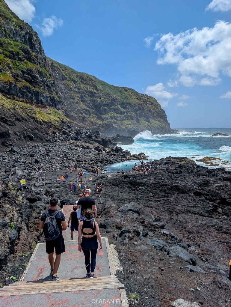 - The walk from the carpark to the natural pool is mostly paved, but you will need to walk on volcanic rock – quite rough on bare feet, so bring flip-flops or water shoes