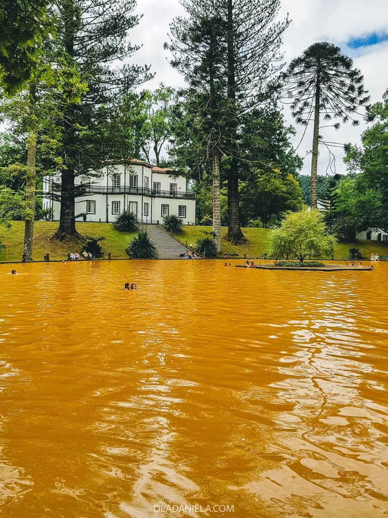 This ginormous hot spring is set within the lushest botanical garden in Furnas. Parque Terra Nostra’s massive, iron-rich, orange-tinged pool is fed by a volcanic spring with a temperature that ranges between 36°C – 42°C (97°F – 108ºF). The pool was first built in the early 1780s by American merchant Thomas Hickling. He wanted to create a place of relaxation, and originally, the ‘tanque’ or tank was intended for fishing and boating.