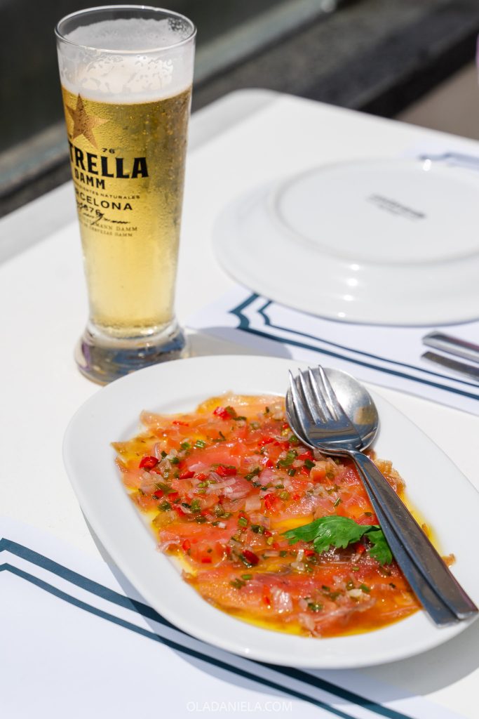 If you love seafood, it’s a fantastic menu – one of the best I’ve seen. We started with a couple of snacks: the presunto do nosso mar (sea prosciutto), a cured local fish tinted with beetroot; and Galician-style octopus. Then we made space for a whole sapateira (crab) and a zesty tuna ceviche. My friend loved the fried moray eel, which had a fatty layer like pork belly but was cooked beautifully, similar to fried chicken. Delish.