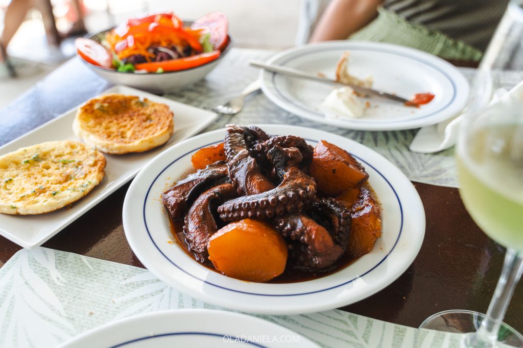 The speciality dish at O Américo de Barbosa is grilled octopus, which comes piled high with fantastic potatoes. That’s reason enough to have had the restaurant on my “to eat” list for many years. One dish of octopus serves two, especially if you go hard on the snacks like we did – with fresh cheese, fish soup and a side salad. If we had another stomach, the sizzling limpets smelt and looked excellent too.
