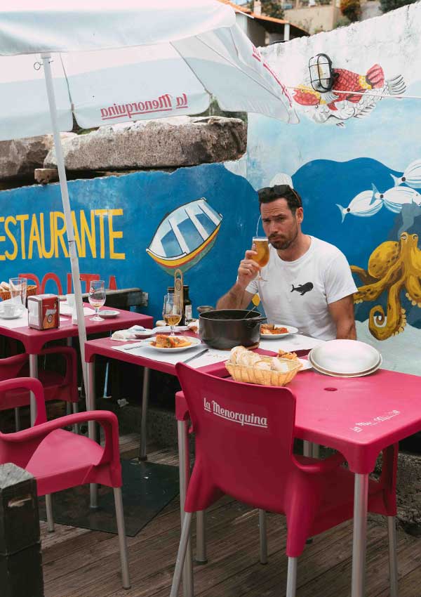 There’s nothing better than a cheap, casual spot with spectacular oceanfront views. We pulled up a seat right on the water at the Naval Club in Seixal. It was edging towards 3pm and we just wanted something light. We received the best lapas (grilled sea barnacles) of the trip, which pair beautifully with the local lager, Coral, of course. We also shared a marinated octopus bolo de caco sandwich. Afterwards? The only thing left to do is luxuriate on Europe’s third best beach for 2022.