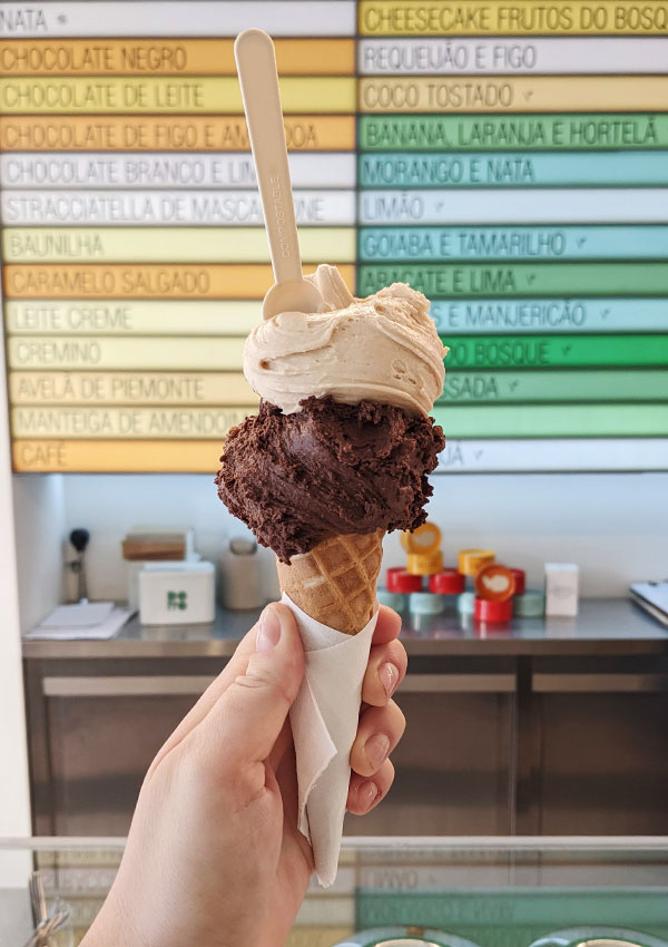 Doppo is a double threat, peddling both the best specialty coffee AND artisan Italian gelato in Coimbra. We stopped for a great (and cheap, compared to Lisbon) flat white and returned later in the afternoon to try classic and fun gelato flavours. I had the chocolate, fig and almond gelato, and Jorge tried the banoffee rum. Excellent texture and consistency.