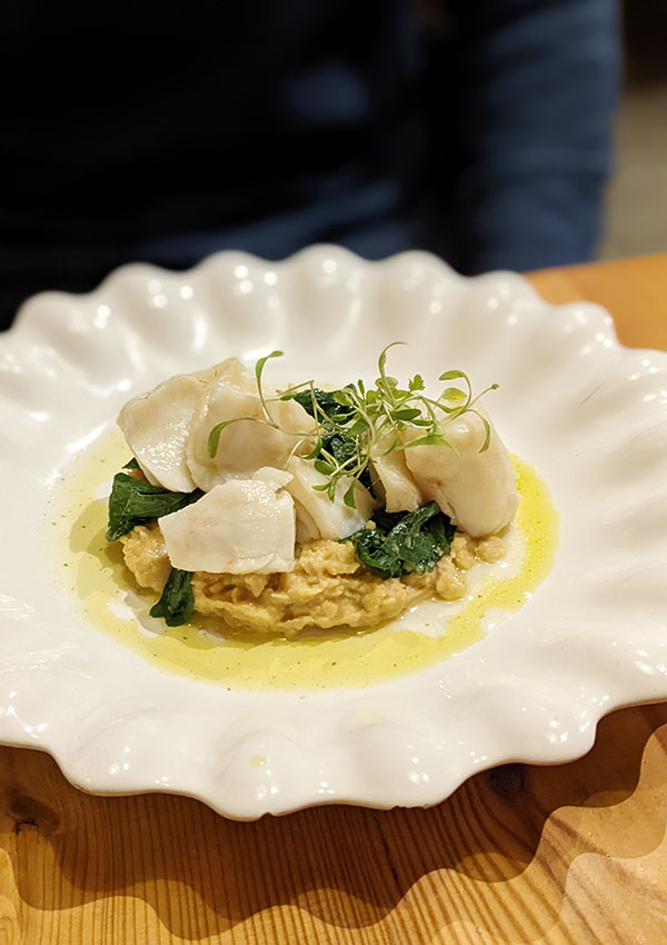 Our table was next to a roaring fireplace and beneath the giant flue of the former kiln. We could see right into the workshop through big glass windows. Finally, a restaurant that combines my two loves – artisanal ceramics and food! Food-wise, the tuna ceviche might be the best and most interesting I’ve tried in Portugal, and the confit bacalhau (salted cod) was a perfect modern take on bacalhau com o grão-de-bico (salted cod with chickpeas). Pair with a local wine from Bairrada, of course.
