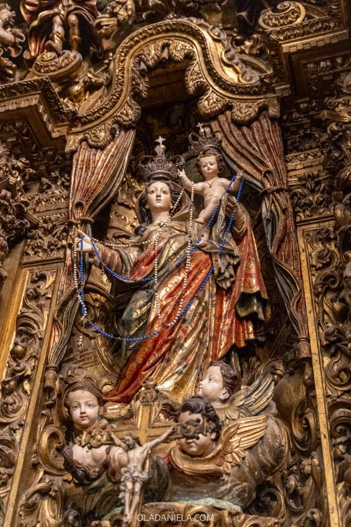 Across the square sits another huge church, the Igreja da Misericórdia. First built in the 16th century, an 18th-century renovation has given it a more Rococo and Neoclassical style, including some shiny gilded interiors – though I found it fairly restrained and minimalist within. There’s a little paid museum as part of this church too.
