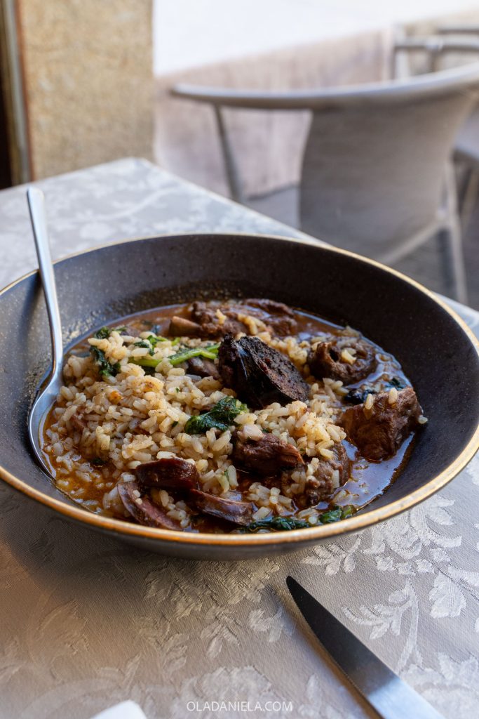 Whenever I travel across Portugal, I always look for restaurants with local provenance, and so, this led me to Restaurante Porta. I was suspicious of the ace location, right next to the cathedral with a huge terrace overlooking Praça de Dom Duarte. But this is Viseu, not Paris. Porta is a chic, slightly upmarket spot offering well-executed regional and Portuguese dishes. I went for the arroz de carqueja, a local Beira dish I’d never seen before. Carqueja is a dried herb that translates to gorse or broom in English. It was a super hearty, meaty rice, studded with bitter greens and local smoked sausages. I’d suggest calling ahead for a reservation if you can!