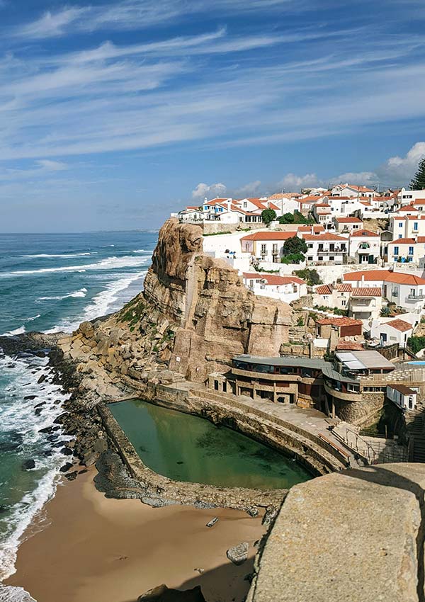 If you don’t squeeze in another palace there are dozens of alternative ideas in Sintra, from visiting markets to drinking craft beer to hiking the forest. By the coast you can visit the super cute village of Azenhas do Mar, where whitewashed village homes cling to the cliffs.