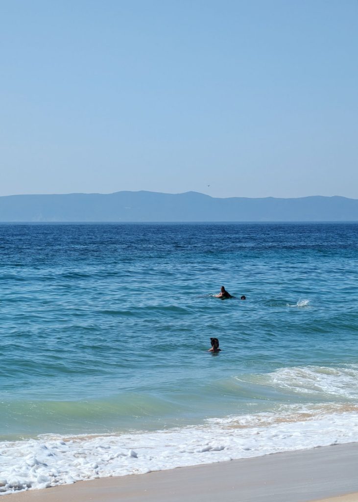 Heading south, you’ll pass Praia da Torre and Praia dos Brejos on your way to Carvalhal village. Both those beaches are harder to reach, and I don’t think they have lifeguards. I’ve been on Torre Beach with Cavalos na Areia, and I recall it being completely wild and totally empty as we rode along the shore on horseback (more on that below!)