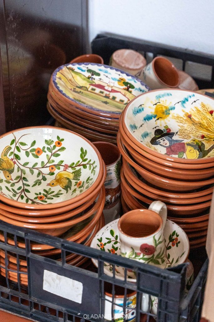 In 2000 he opened his modest studio, where he shapes the clay and paints each piece with his particular style and designs featuring traditional themes of nature and rural life. He’s a friendly guy who loves a chat. One question from us revealed his life story along with that of Redondo (in Portuguese) so don’t be afraid to say hi. There’s a great interview with him here (in Portuguese).