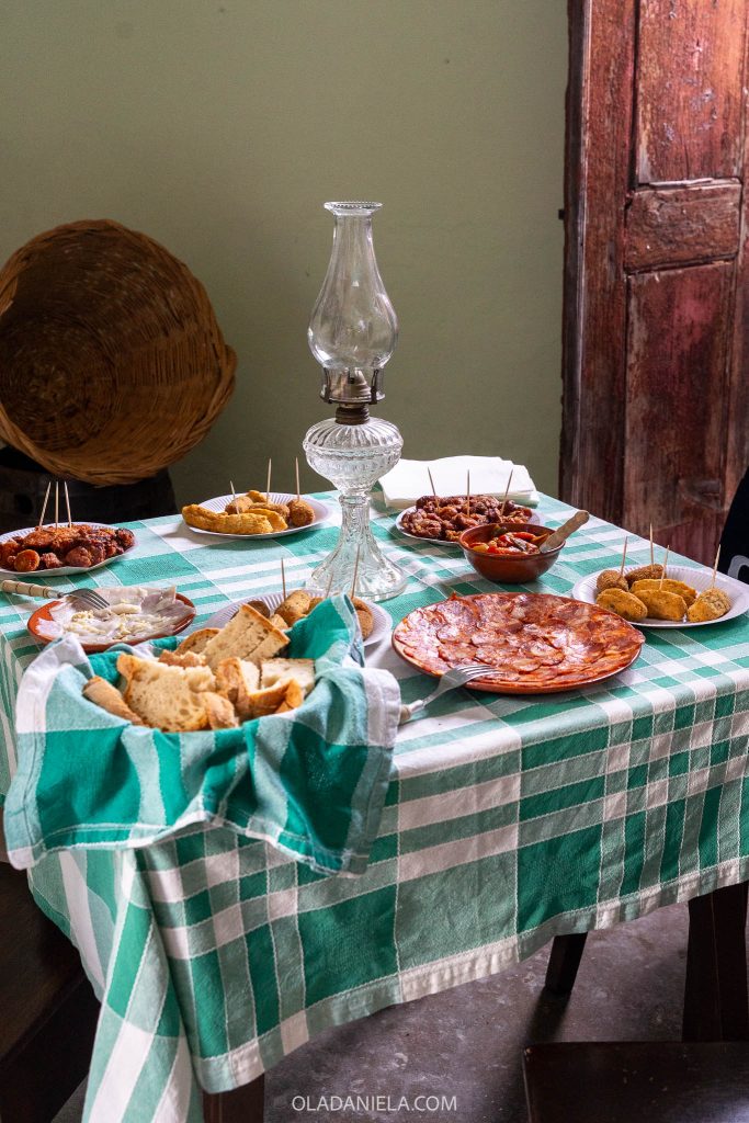 The third stop sent my jaw to the floor. We entered the inconspicuous door of a private home to find a family’s cellar filled with 14 talhas and dozens of antique terracotta Redondo plates. Down the centre was a long table covered in a red checked tablecloth where a spread of local cheese, charcuterie and salgados lay in wait.