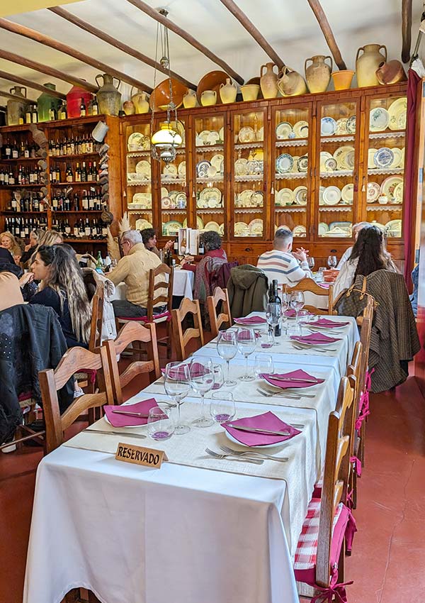 The door burst open at 4.30pm sharp and three young men waltzed out with more tables, ready for the non-stop onslaught of orders. Oysters, clams, fresh presunto, flaming chouriço, bottles of white wine and generous mounds of bread fly across the square. A white cat stalks between the tables, artfully avoiding children while lurking for scraps as the sun sets on another amazing day.