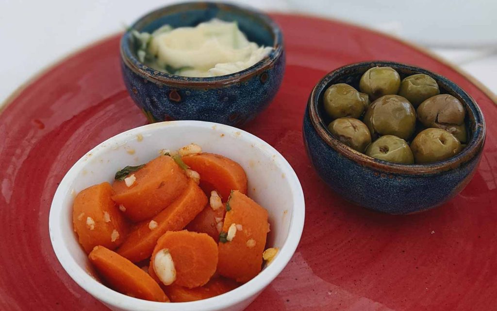 Keep an eye out for this super simple starter: boiled carrots seasoned with garlic, coriander, vinegar, olive oil and salt. It’s left in the fridge for a few hours or days and makes for a healthy snack.