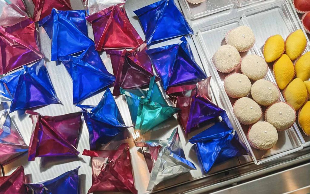 Step into a pasteleria and you’ll spot colourful little foil pyramid parcels inside the counter. These little mystery packages are an Algarve specialty, filled with fios de ovo (egg yolk and sugar threads) and an almond, egg yolk and cinnamon paste.
