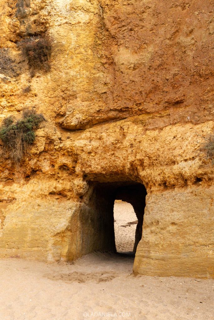 This small beach is one of the most beautiful around Lagos, but sadly it was closed during my last trip (October 2024) due to unstable cliffs. There are two parts to this beach, which requires access via a stone staircase or newer wooden staircase – but both were blocked off with official signage and barriers. You may be able to reach the beach at low tide from Praia dos Estudantes.