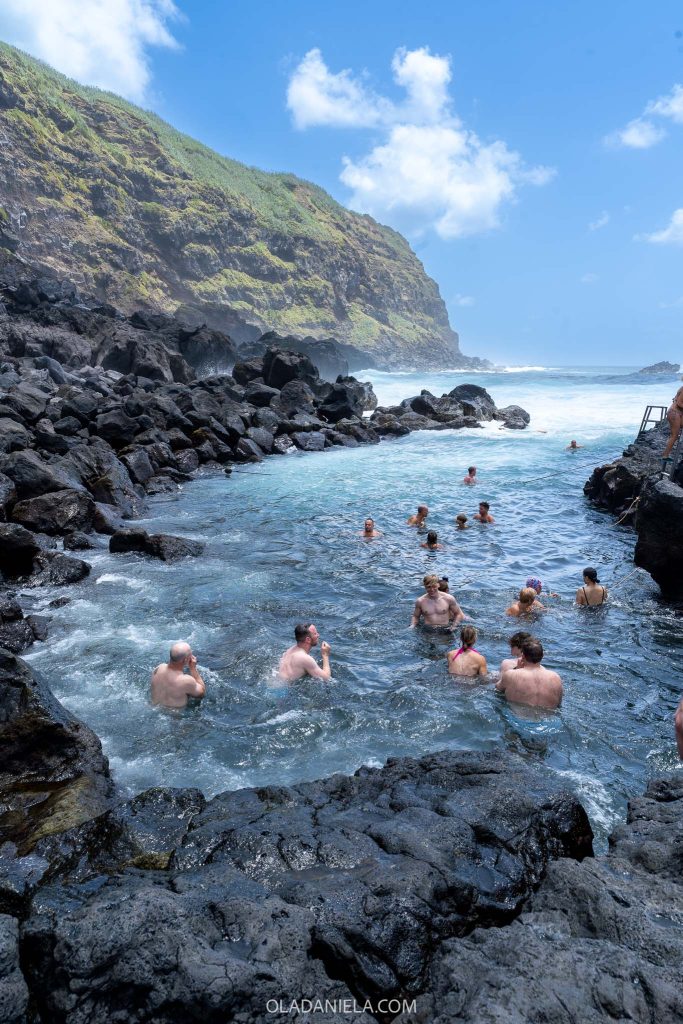 At a tiny destination near the second city of Ribeira Grande lie São Miguel’s two smallest thermal pools. Fed by hot springs – one at around 38°C (100°F) and the other at 40°C (104°F) – with 8-10 people, they feel full!