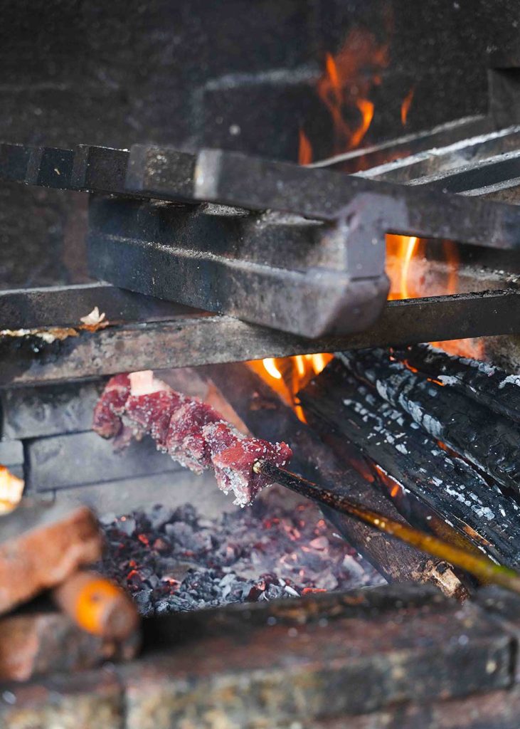 Now you can approach the huge wood-fire barbecue to grill-your-own skewers. Intimidating? Slightly, but there’s a friendly grill master on hand to offer tips and keep the coals hot. Then, simply do as the locals do. Stand around the tables (there are no chairs), pull hunks of beef off the skewers with your bread and debate which Portuguese football club is best.