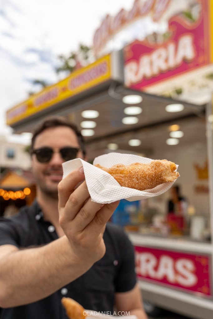 Any street festival in Portugal has a fartura and churro van parked out the front. Watch them pour a spiral of dough into hot oil, then slice the doughnut into pieces. Farturas are cheap, coated in cinnamon sugar and the thicker size means crispy outside, soft inside.