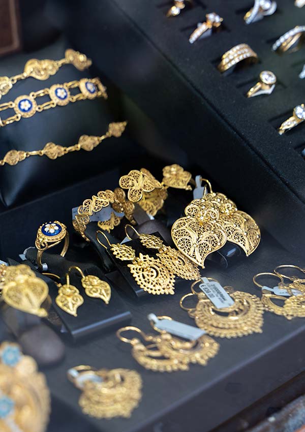 While wandering around the historic core of Viana do Castelo you’ll no doubt notice the high number of jewellers. While Viana do Castelo has never been a jewellery producer, the town’s main festival, Romaria d’Agonia, in August is a showcase of traditional Portuguese gold jewellery. Look in the windows and you’ll see filigree gold earrings, necklaces and more. The oldest style of jewellery is the Viana bead, or contas de Viana. Women would buy – or receive – these one by one, threading them onto wool.