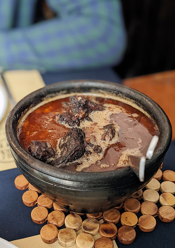 Ossos. Bones. The specialty of the house. When you order this dish you receive a small silver tray loaded high with the spine bones of a pig that have been simmered and stewed in a peppery broth. Delicious? Absolutely. But that’s just to start.