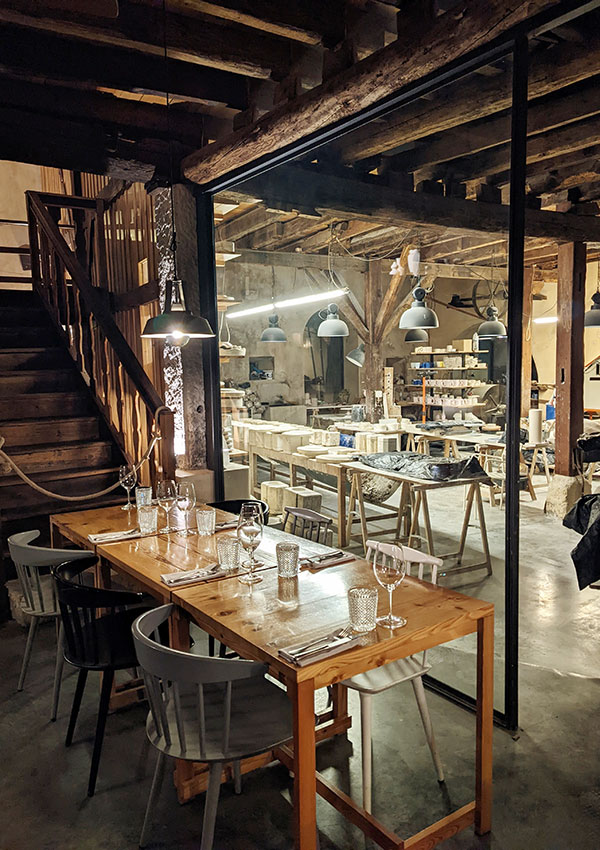 Our table was next to a roaring fireplace and beneath the giant flue of the former kiln. We could see right into the workshop through big glass windows. Finally, a restaurant that combines my two loves – artisanal ceramics and food! Food-wise, the tuna ceviche might be the best and most interesting I’ve tried in Portugal, and the confit bacalhau (salted cod) was a perfect modern take on bacalhau com o grão-de-bico (salted cod with chickpeas). Pair with a local wine from Bairrada, of course.
