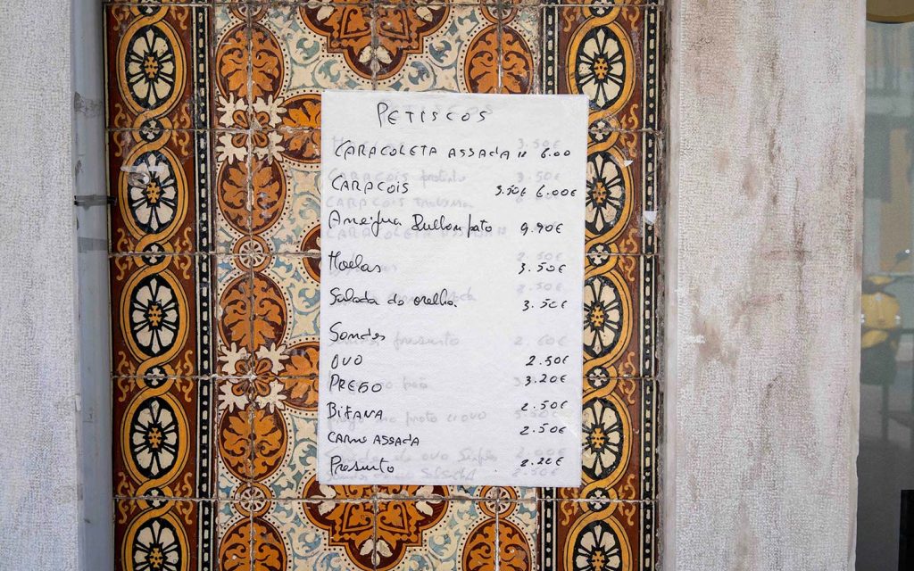 Often they’ll sell really basic hamburgers for less than €5, hotdogs, bifanas and maybe kebabs. I know of late-night vans parked at Quiosque de Santos, outside É Prà Poncha, and Roulotte Pitéu da Rua at Alcântara-Mar.