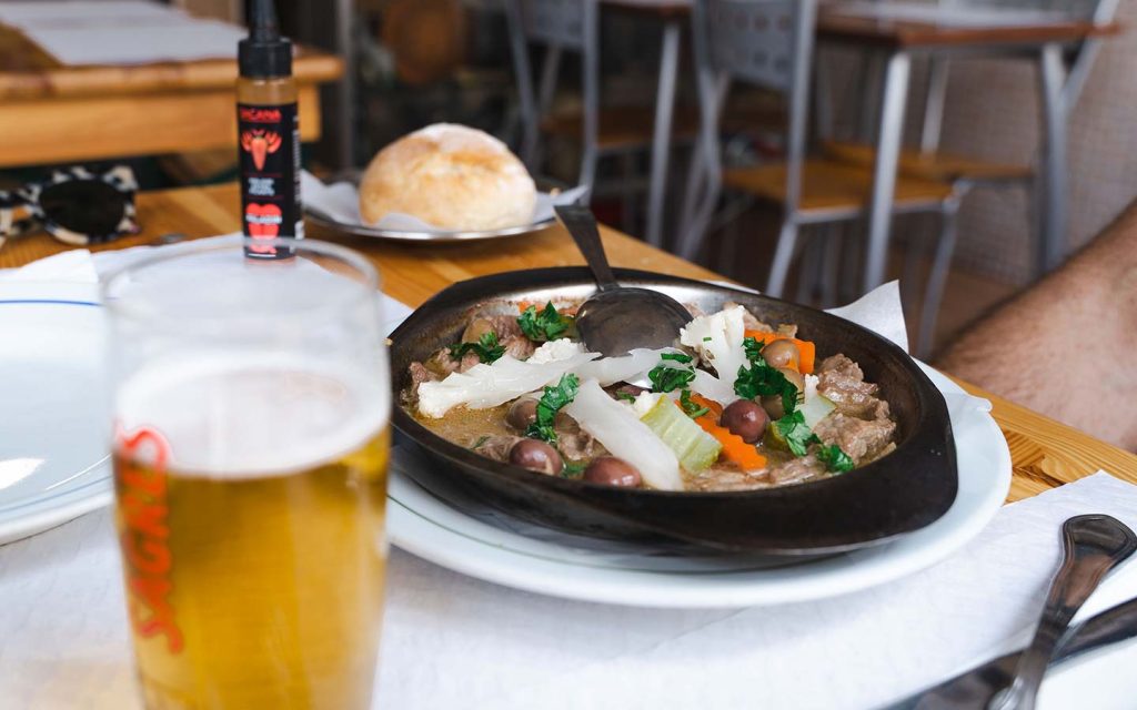 Chunks of tender steak in gravy with pickles. Pica pau is a delightfully vinegary classic petisco and a favourite dish that’s quite easy to find. Essentially after cooking the slices of steak, the pan is used to make gravy then it’s all served in a pot with pickled carrot and cauliflower. More recently I’ve seen some riffs on the classic done with lightly-seared tuna too.