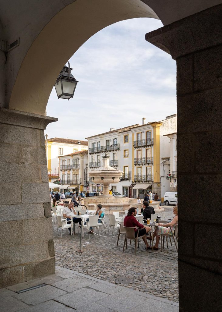 Évora’s main square, Praça do Giraldo, is the heart of the old city centre. On any sunny afternoon you’ll find café tables sprawled across the huge plaza with locals and visitors enjoying coffee or aperitivo hour.