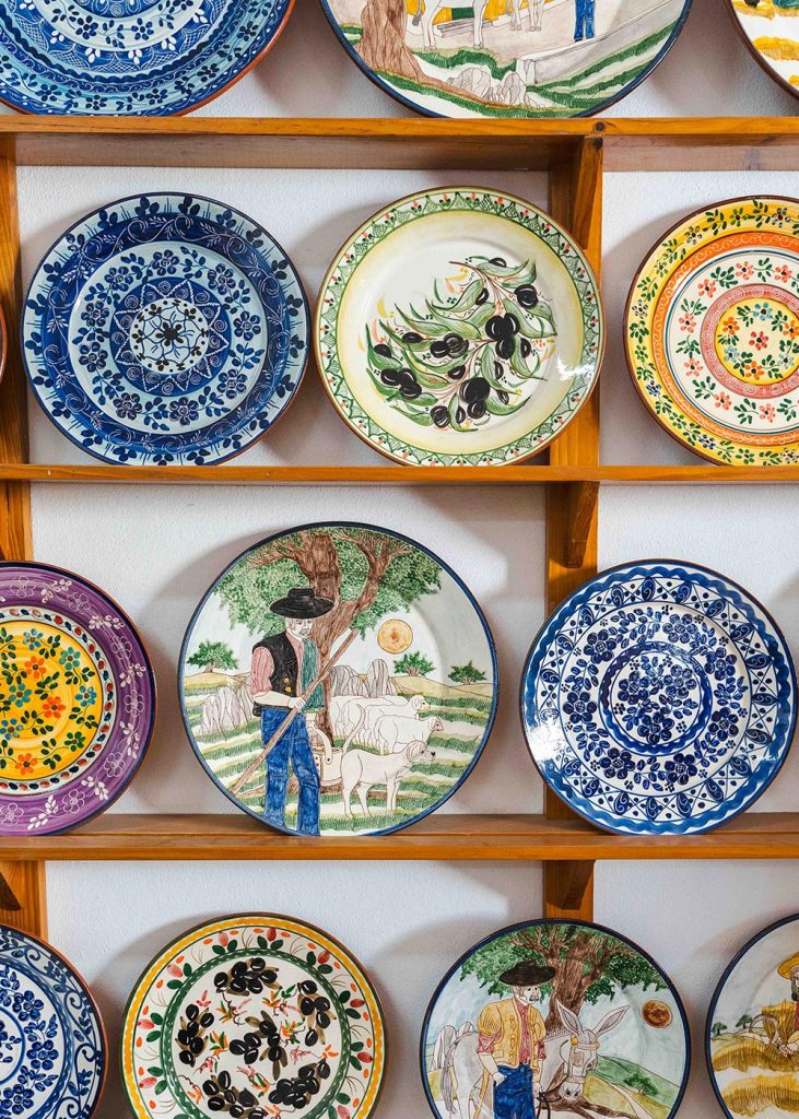 The large workshop of José Cartaxo displays more traditional Alentejo pottery. Expect to find vases, plates, and Portuguese ceramics of all shapes with colourful flowers and typical Alentejo motifs, such as shepherds, harvests, pigs, and mountains.