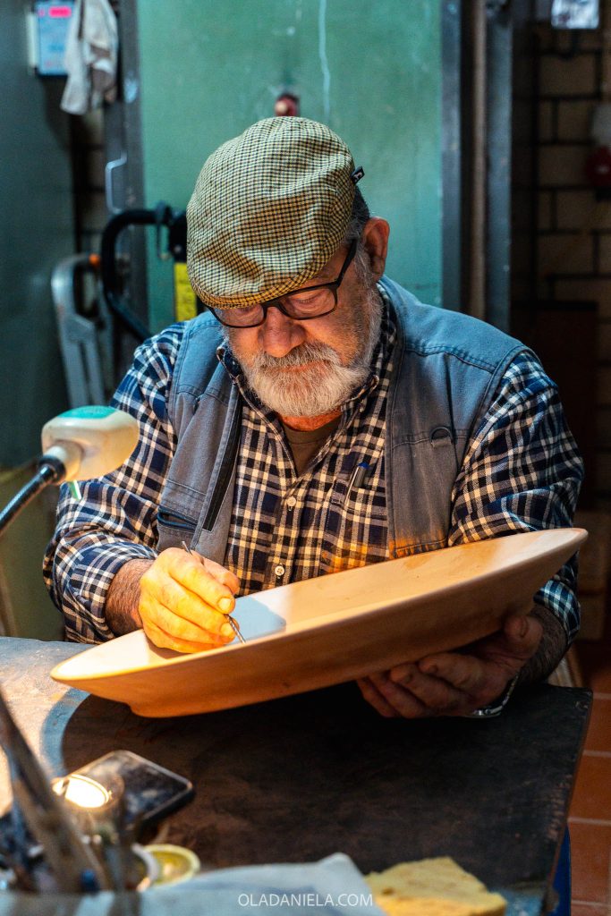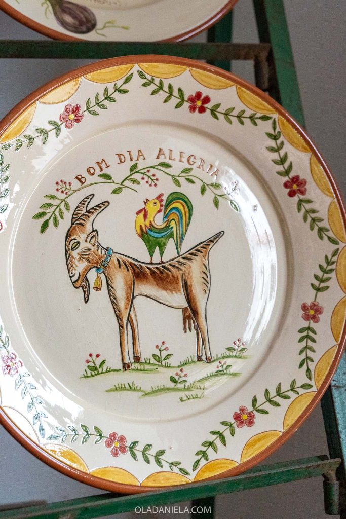 In 2000 he opened his modest studio, where he shapes the clay and paints each piece with his particular style and designs featuring traditional themes of nature and rural life. He’s a friendly guy who loves a chat. One question from us revealed his life story along with that of Redondo (in Portuguese) so don’t be afraid to say hi. There’s a great interview with him here (in Portuguese).