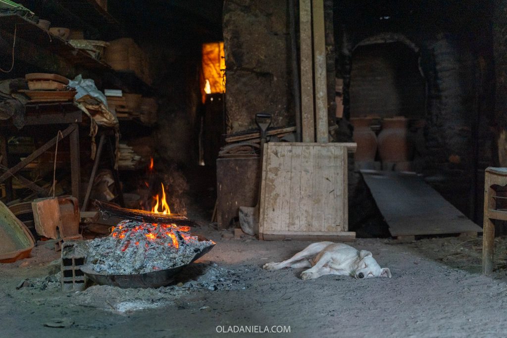 He learnt the art from his father, starting at age 12, and today it’s just him. Unlike most potters I’ve encountered in Portugal, this artisan still collects clay from local pits himself and processes it the traditional way – removing debris to create clean clay, which he then kneads, moulds, dries and fires in the only wood-fired oven still operating in the village.