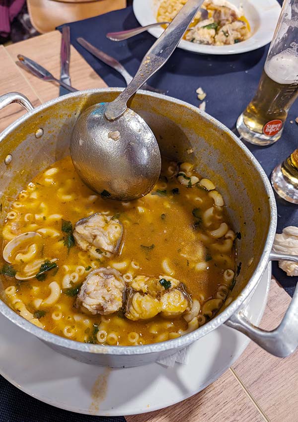 You should eat seafood out of a giant copper clam in the Algarve. Called a cataplana, this cooking pot and method is unique to Portugal’s southern coast. With a hinge at one end and clasp at the other, the copper clam-like pan is closed up with fish, seafood, potatoes, vegetables and liquid to make it all steam while cooking. We figured this well-known seafood restaurant would best one of the best places to try cataplana, and it was.